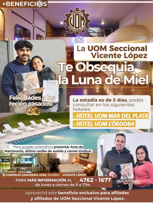 Inicio Gremial Beneficio sindical Luna de Miel GremialBeneficio sindical Luna de Miel Por Equipo Editorial UOM Vicente López - 24 marzo, 2000 4 0 Share on Facebook Tweet on Twitter ENTRADAS RELACIONADASMÁS DE ESTE AUTOR Beneficio sindical Cursos Marzo 2026 – Abierta la Inscripición Beneficio sindical Ciclo Lectivo 2026 – Entrega de Mochilas y útiles Actividades Vacaciones de Invierno a puro cine en el Camping Metalúrgico 4,957FansLike388SeguidoresSeguir16,000SuscriptoresSuscribirse